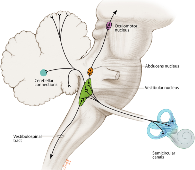 Este distúrbio surge de uma assimetria aguda no sistema vestibular, que inclui o aparelho vestibular no ouvido interno, o nervo vestibular e seus núcleos no tronco encefálico, e conexões com o cerebelo.