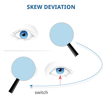 Os achados que sugerem uma causa central no HINTS incluem: teste do impulso da cabeçanegativo (ausência de sacada corretiva), nistagmo com padrão central(vertical puro, bidirecional ou rotatório puro) ou desalinhamento vertical dos olhos(skew deviation).